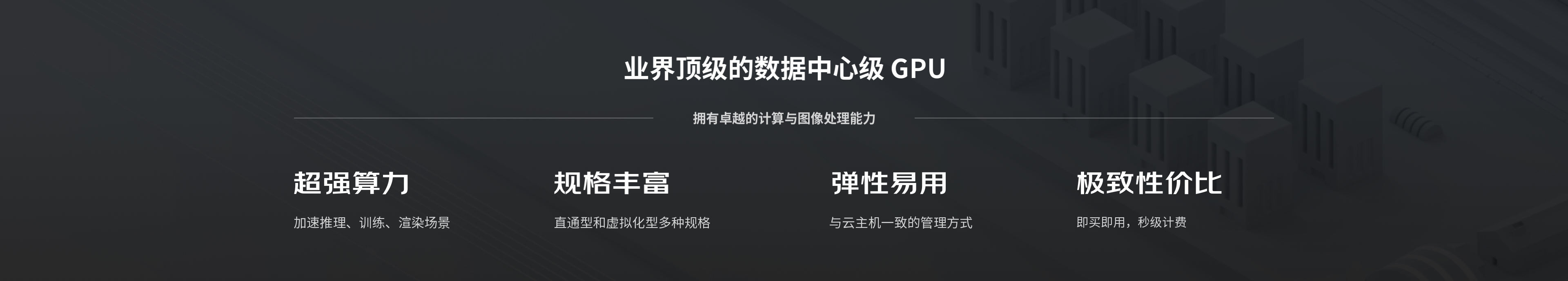 GPU 云主机采用和云主机完全一致的管理方式,功能强大,简单易用,按需弹性扩缩容。更可搭配多种高性能存储产品,快速搭建云上高可用的 GPU 集群,体验极致的计算性能。